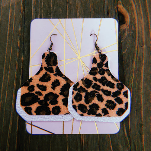 Rusty Orange Cheetah Print Shimmery Ear Tag Shaped Earrings