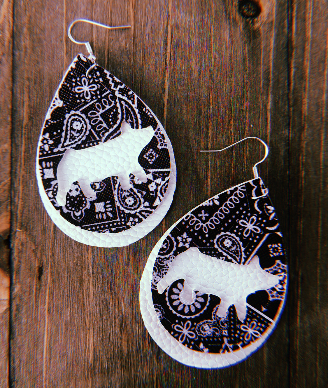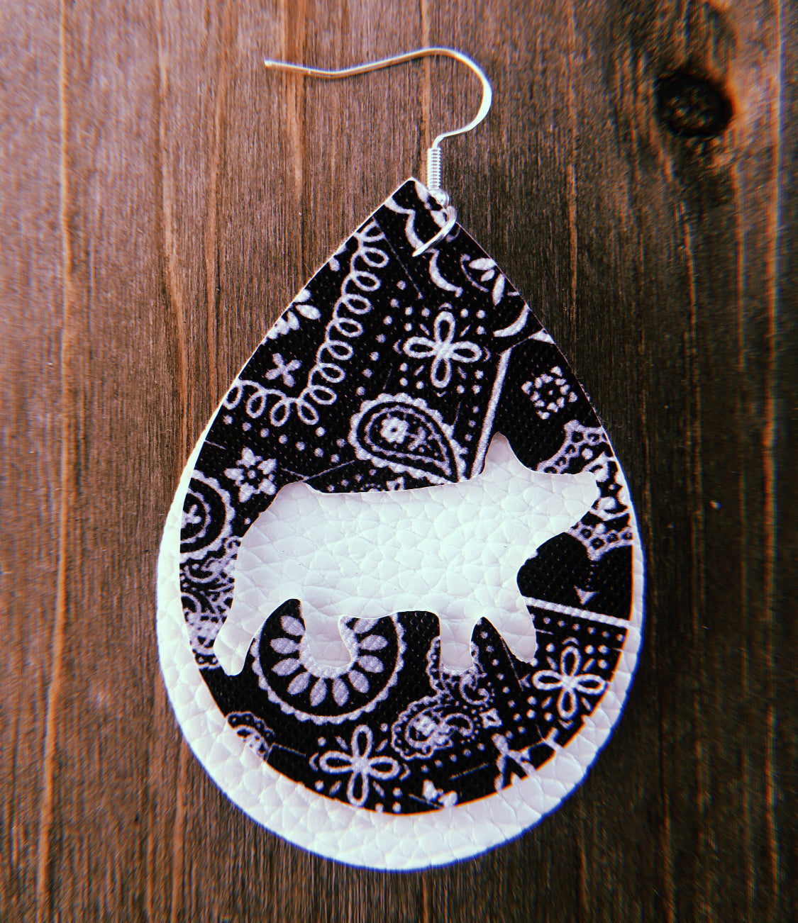 double layer black paisley pig teardrop shaped earrings with a white bottom layer. these are super lightweight and give an adorable touch to any outfit!