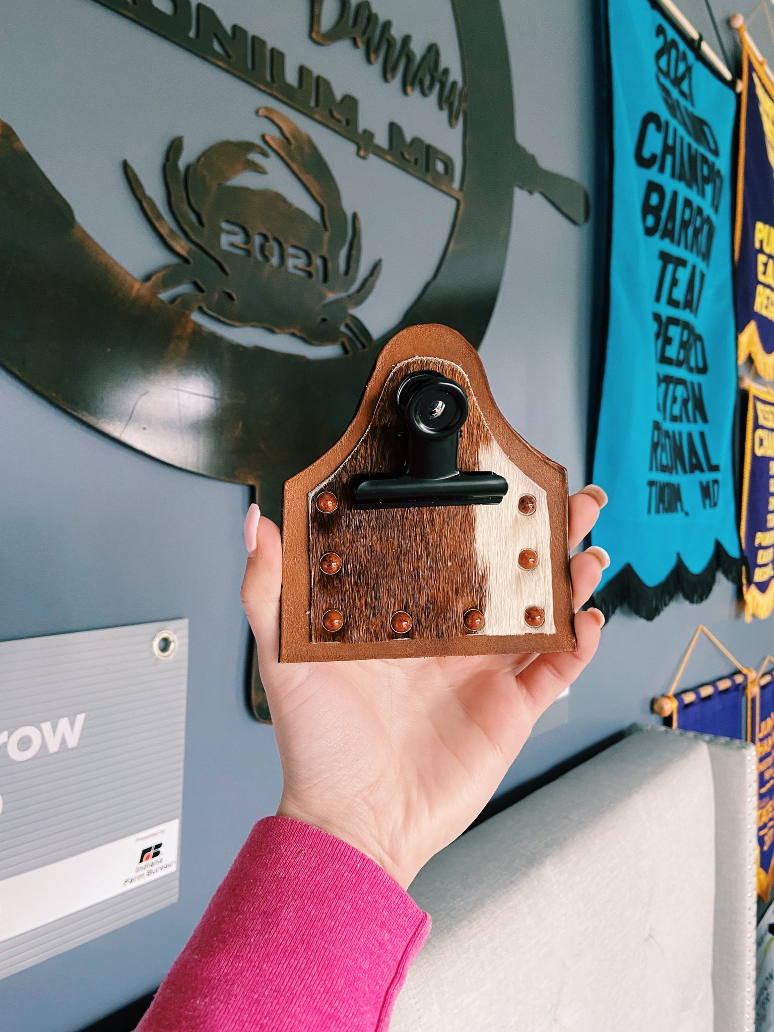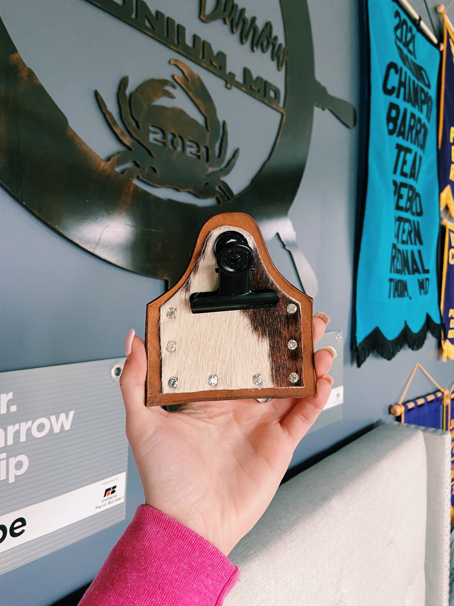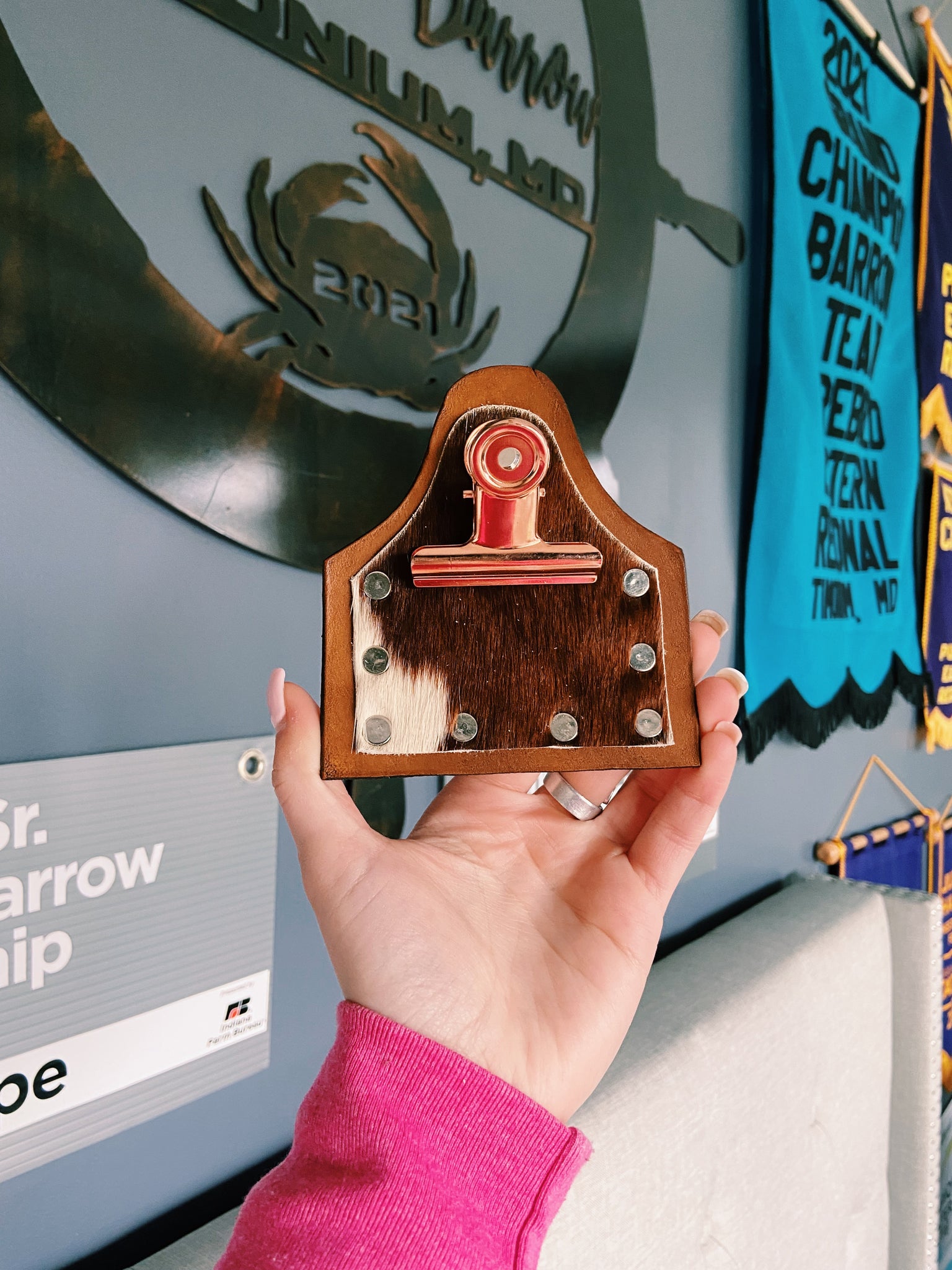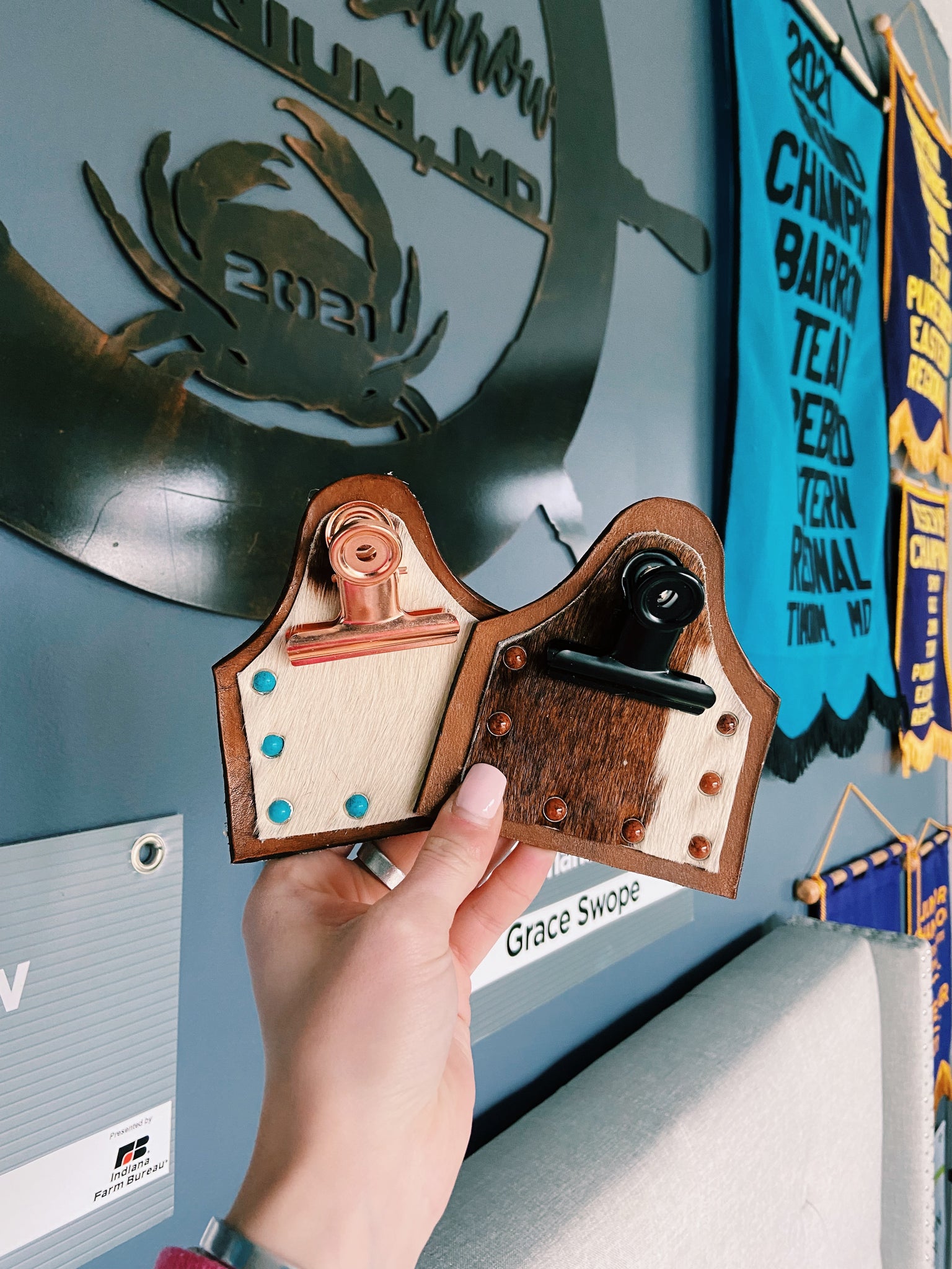 super cute handmade brown cowhide genuine leather number holders! these are the perfect accessory to enhance your show ring look! these fit perfectly onto any belt as well!