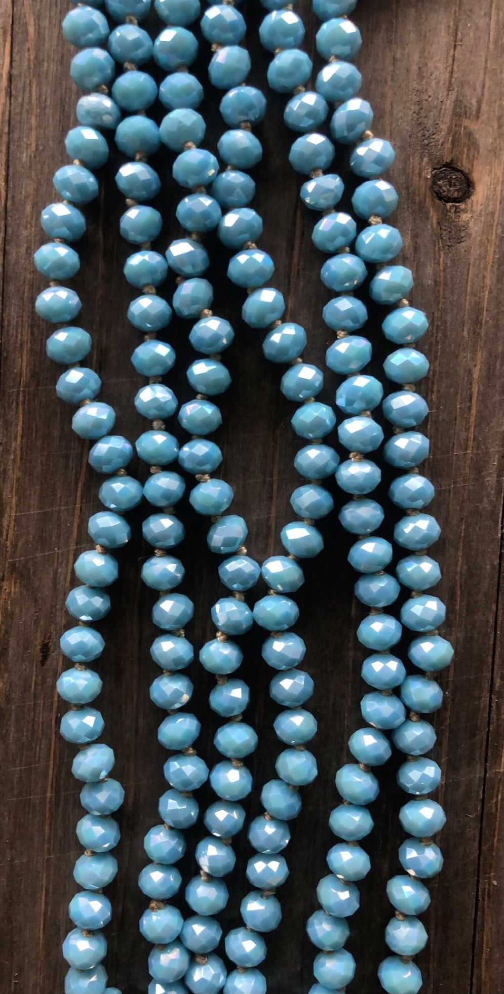 super pretty 60 inch long glossy blue beaded necklace. this is a super pretty color that will match perfectly with any outfit you'd like!