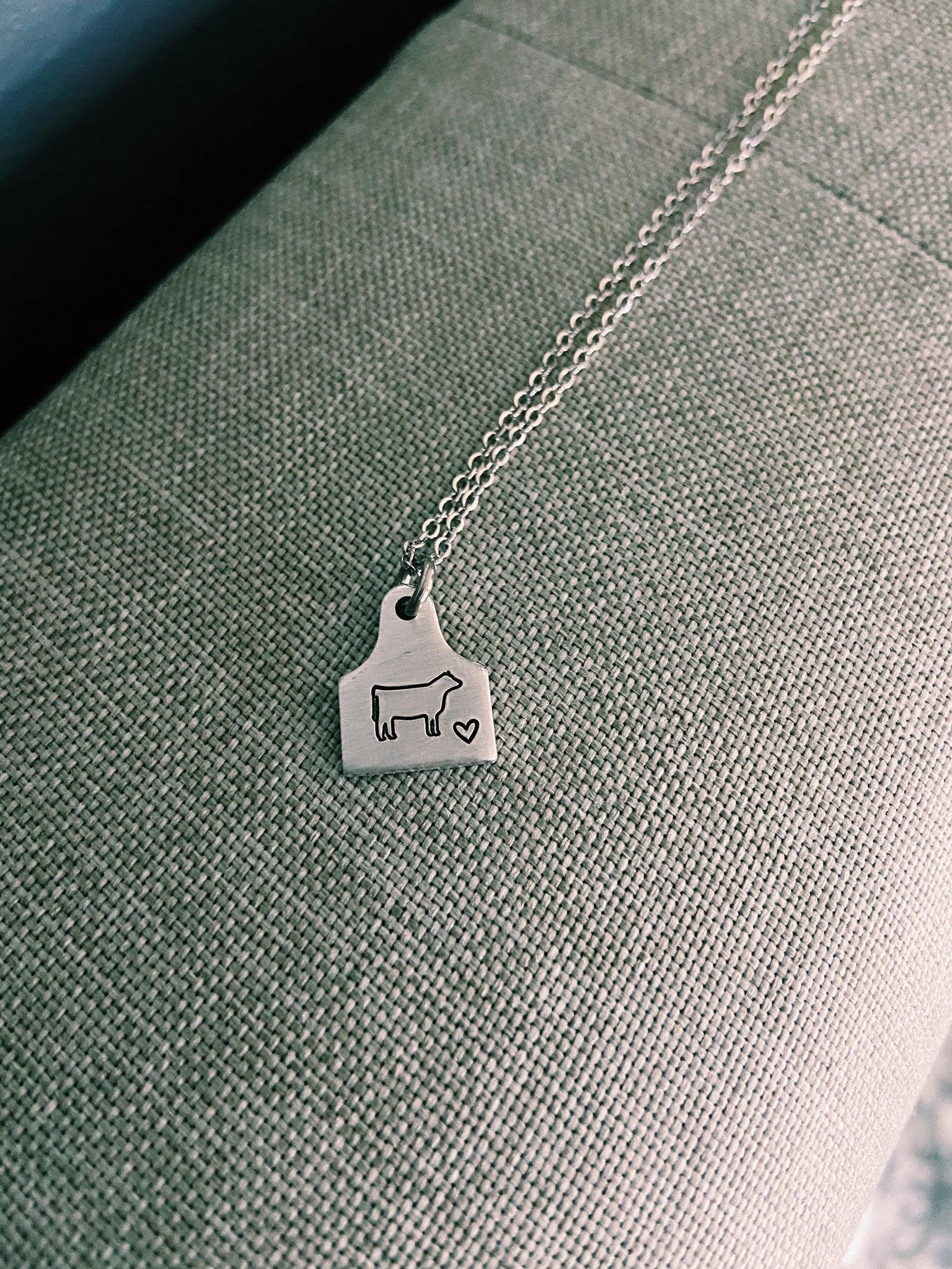 super cute mini heart cow ear tag 12-16 inch adjustable necklace! these are the perfect accessory to rock your love for livestock!