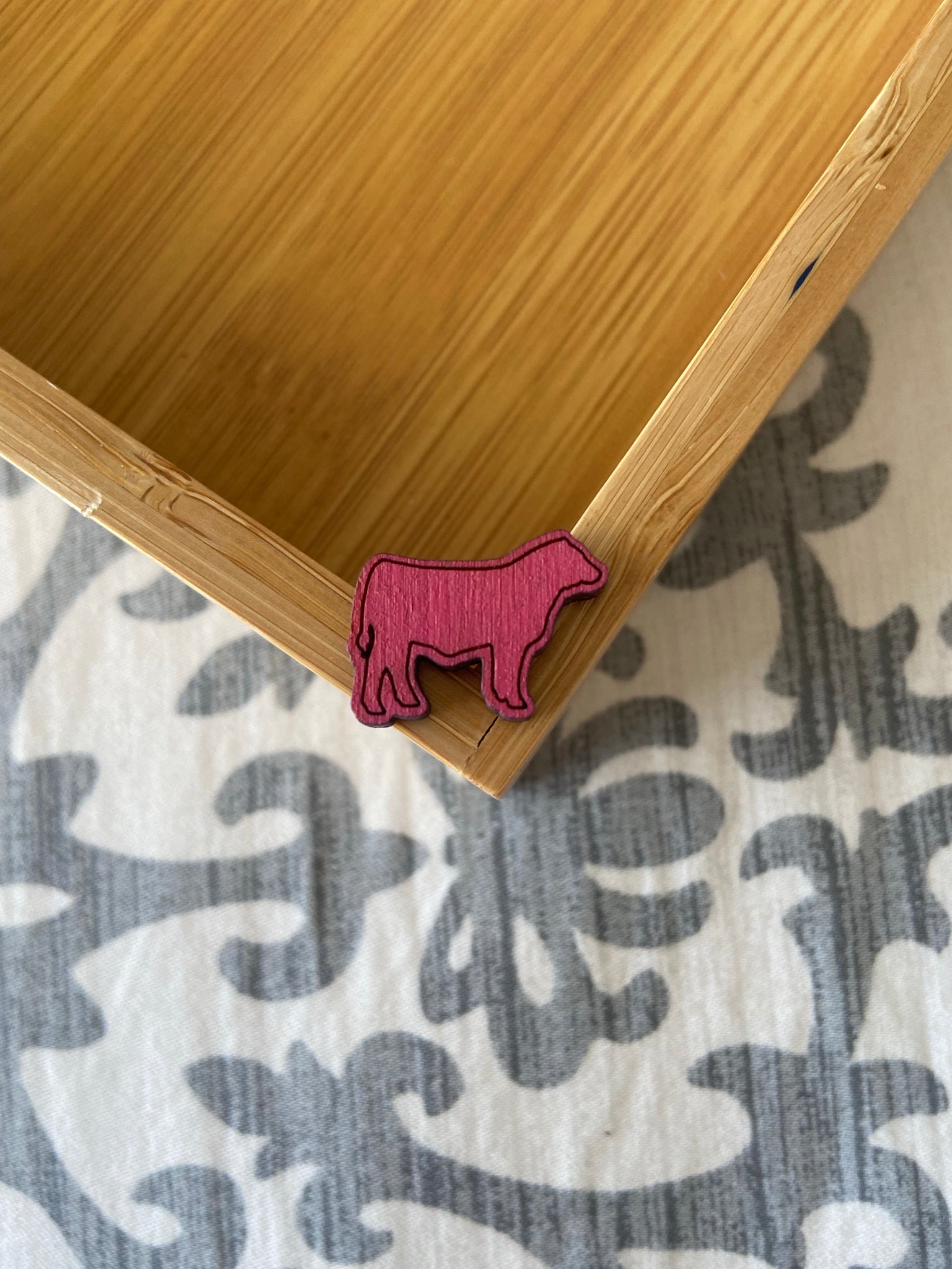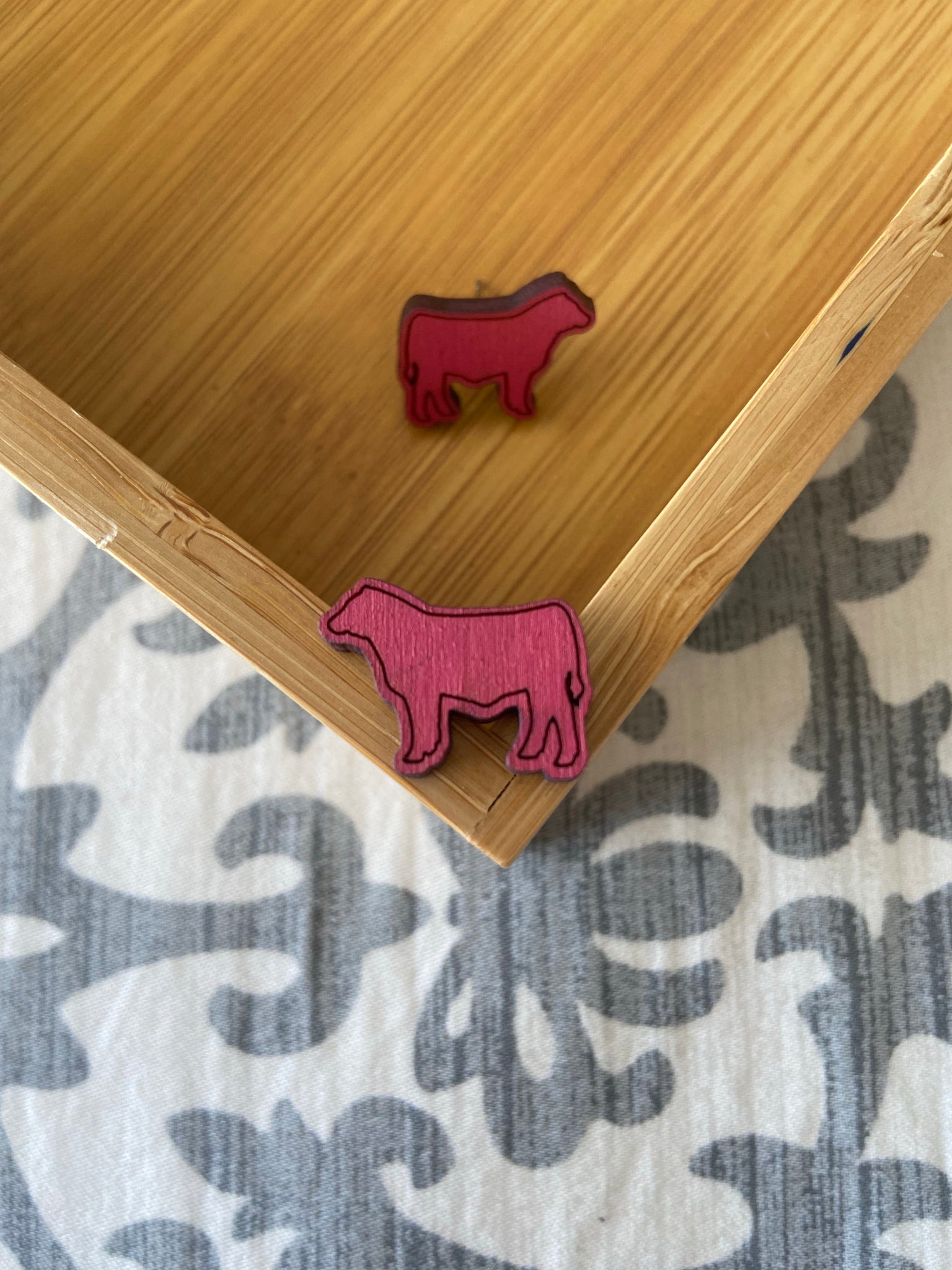 super cute magenta wooden steer stud earrings. these are perfect for anyone who loves studs & steers! they’re about an inch long and super lightweight as well!