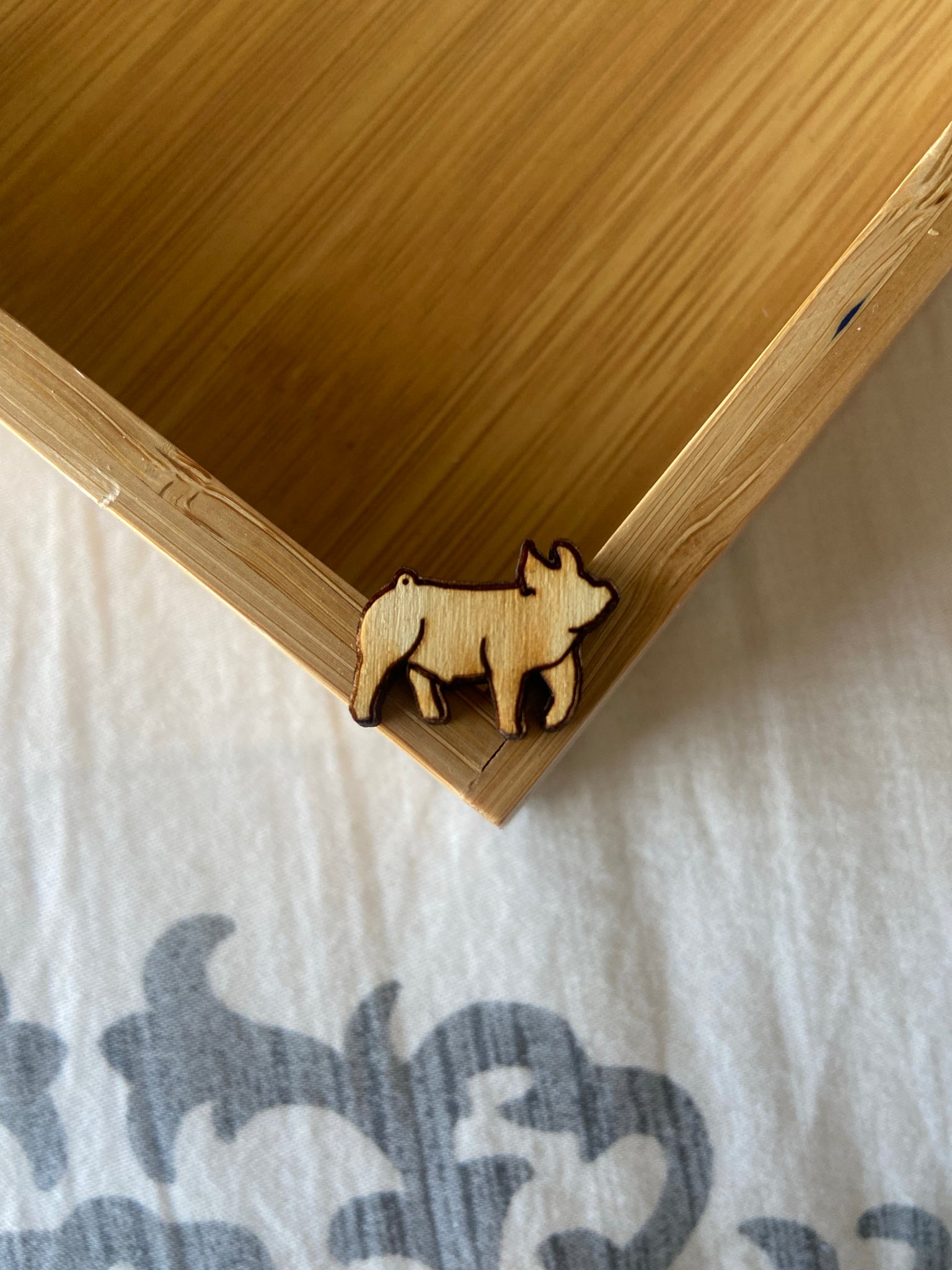 super cute natural colored wooden pig stud earrings. these are perfect for anyone who loves studs & pigs! they’re about an inch long and super lightweight as well!
