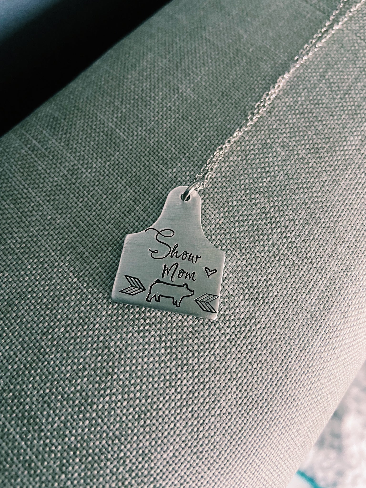 super cute show mom pig ear tag 12-16 inch adjustable necklace! these are the perfect accessory to rock your love for livestock!