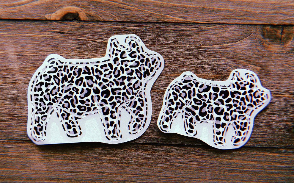 small black, grey and white cheetah print decals. these are perfect for your vehicles, laptops, trailers, water bottles, tack boxes, and more! pattern placement may vary from decal to decal!
